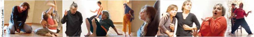 en silence, sur des musiques extrêmement variées ; avec l’ajout progressif de textes, objets, costumes.